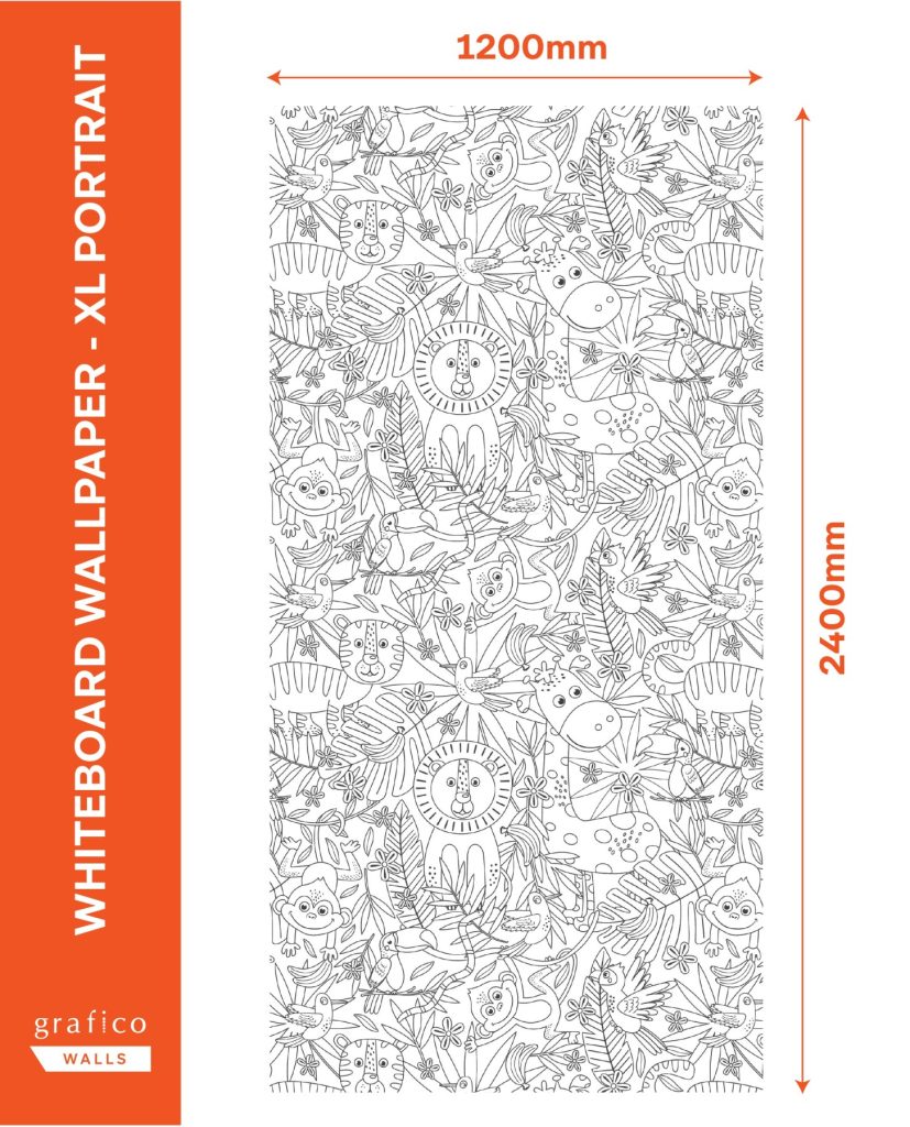 Keep your kids (…or adults) entertained for hours upon end with our huge colour-in whiteboard wallpaper prints. Printed to our removable wallpaper with a gloss whiteboard laminate turning it in to one huge colouring in whiteboard!